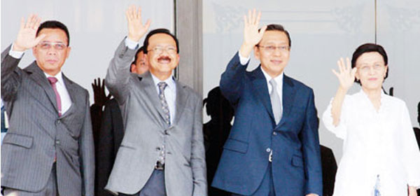Wapres Boediono beserta Istri, didampingi Menkopolhukam Djoko Suyanto (kiri) dan Gubernur DKI Jakarta Fauzi Bowo melepas Presiden SBY di Halim Perdanakusumah, Jakarta, (Sabtu 22/9). Foto: RM/Randy Tri Kurniawan KOMENTAR