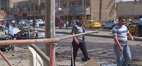 Seorang lelaki Irak melintasi puing-puing bangkai mobil di Distrik Karrada, Baghdad, (30/1). Milisi kembali menyerang ibu kota Irak. sedikitnya 15 orang tewas dan 42 lainnya luka parah. Foto: AFP/Dunlop KOMENTAR