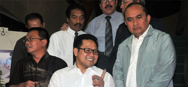 Menakertrans Muhaimin Iskandar memberikan keterangan pers terkait demo pekerja/buruh di kantor Kemnakertrans pada Rabu (3/10). Muhaimin mengatakan pemerintah akan terus berdialog dengan pekerja dan pengusaha untuk mencari solusi terkait masalah outsourcing, upah layak dan jaminan sosial bagi pekerja/buruh. Foto:RM/Dwi