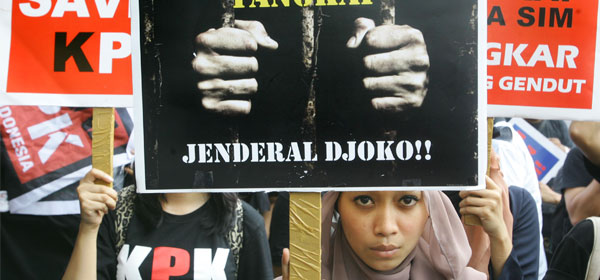 Puluhan masyarakat pendukung KPK dari berbagai elemen berunjukrasa didepan gedung KPK Jalan Rasuna Said, Jakarta Selatan, Jumat (5/10/2012). Aksi unjukrasa mendukung KPK menangkap Koruptor di tubuh Polri berbarengan dengan pemeriksaan Irjen Pol Djoko Susilo yang siperiksa terkait dugaan korupsi simulator Sim MAbes Polri. Foto: Muhammad Ali