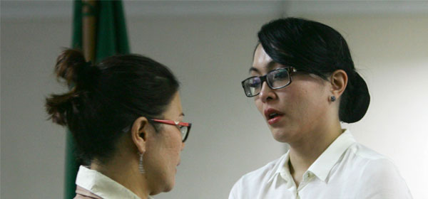 Angelina Sondakh (kanan), tTerdakwa kasus dugaan penerimaan suap anggaran proyek Kementerian Pendidikan Nasional serta Kementerian Pemuda dan Olahraga, berhadap-hadapan dengan saksi Mindo Rossa Manulang usai sidang Pengadilan Tipikor, Jalanl Rasuna Said, Jakarta Selatan, Kamis (11/10/2012). Foto: Jawa Pos
