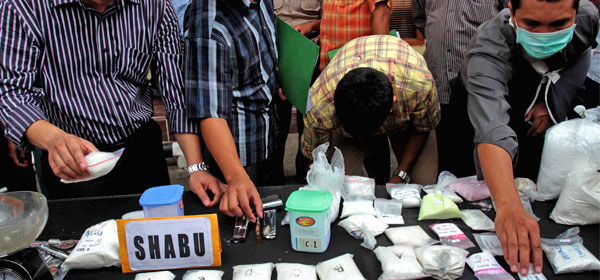 Petugas Kepolisian Resor Jakarta Barat menangkap tujuh tersangka pemilik pabrik ekstasi di Jalan Pembangunan, Kelurahan Petojo Utara, Kecamatan Gambir, Jakarta Pusat dalam jumpa persnya di Mapolres Jakarta Barat, kemarin (11/10). Bisnis ekstasi dan sabu yang mampu meraup untung puluhan juta ini dikendalikan oleh ibu salah satu tersangka, MJ, yang sudah ditahan di Rumah Tahanan Pondok Bambu. Polisi juga menyita barang bukti berupa satu buah mesin alat cetak ekstasi, satu alat cetak ekstesi manual ukuran kecil, puluhan butir pil ekstasi dengan berbagai warna, dan senjata api. Foto: Indopos