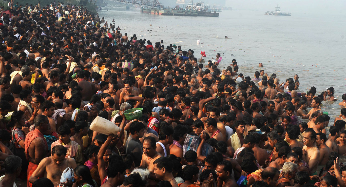 Ribuan umat Hindu di India menggelar upacara Tarpan di tepi sungai Gangga, Kalkuta, India. Ritual mandi suci ini digelar untuk menghormati Dewi durga yang telah mengalahkan Asura. Foto:AFP/Sarkar KOMENTAR