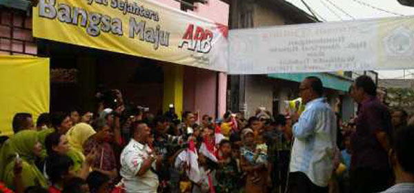 Ketua Umum DPP Golkar Aburizal Bakrie blusukan ke gang kecil Senggol di Jalan Cendana, Bekasi. Dalam kesempatan ini, Aburizal meninjau home industri boneka dan berdialog dengan pengrajin boneka dan warga (Senin, 5/11). YAYAN SOPYANI AL HADI/IST KOMENTAR