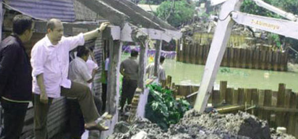 Anggota Komisi V DPR, Marwan Ja’far (baju putih) melakukan kunjungan kerja ke proyek jembatan Juwana, Senin (12/11). Proyek jembatan alternatif untuk lalu lintas Pantura dari arah Surabaya itu molor. Masyarakat demo agar proyek itu segera diselesaikan. Foto: RMol