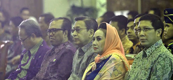 Wapres Boediono didampingi para pimpinan MPR membuka grand final lomba cerdas cermat empat pilar kebangsaan di Kompleks Parlemen, Jakarta, Senin (12/11). Empat pilar kebangsaan yakni Pancasila, UUD 1945, NKRI, dan Bhineka Tungkal Ika terus disosialisasikan ke generasi muda. Foto: RM/Putu Wahyu