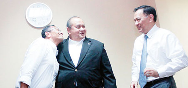 Menteri BUMN Dahlan Iskan, Menteri Keuangan Agus Martowardojo dan Ketua Komisi XI Emir Moeis bercanda sebelum rapat di gedung DPR, (Kamis 13/12). Foto: RM/Ichsan KOMENTAR