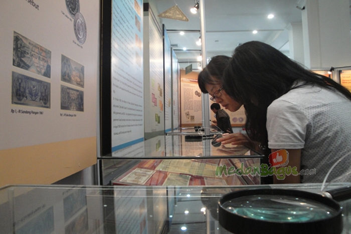 Beberapa pengunjung sedang mengamati koleksi uang dalam acara pameran uang nusantara yang diselanggarakan Bank Indonesia Kamis (20/12/2012). Pameran ini terbuka untuk umum yang dimulai dari tanggal 19-21 Desember, pameran ini bertujuan untuk memperkenalkan awal mula uang sebagai alat tukar yang sah di nusantara. [Wahyu Fahmi]