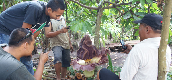 KOMENTAR Warga Pasar Besar, Sei Semayang, Deli Serdang dihebohkan dengan aroma yang dikeluarkan bunga bangkai yang tumbuh di halaman rumah Soeroso (82), Rabu (16/1). TUAHTA ARIEF