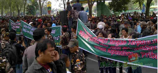 Dengan mengusung poster, massa aksi itu mengingatkan kepada warga Sumut umumnya agar tidak terpancing pada kelompok-kelompok tertentu yang mengatasnamakan Organisasi Kepemudaan untuk kepentingan pribadi. [Hendro Budiman]