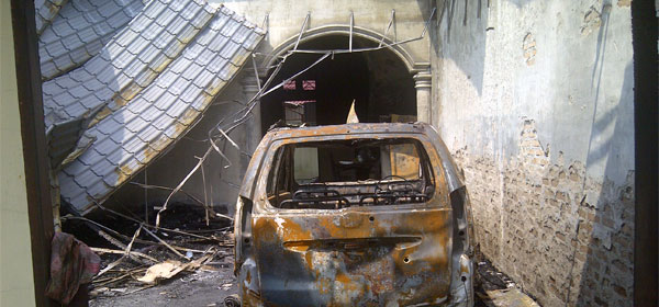 Puing-puing kebakaran dari sebuah rumah di Pasar V, Jalan Bunga Mawar dekat Simpang Empat NO 60CA. Rumah berlantai dua milik P Ginting (49) itu terbakar saat si empunya rumah sedang tak berada di tempat. Kebakaran yang menimbulkan kerugian ratusan juta rupiah ini masih dalam pengusutan Polsek Medan Sunggal. [Hendro Budiman]