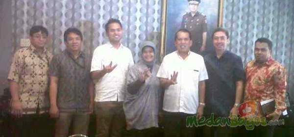 Tim verifikasi Komisi Pemberantasan Korupsi (KPK), foto bersama dengan Calon Gubernur Sumatera Utara, Chairuman Harahap dan keluarga usai pemeriksaan laporan kekayaan di kediamannya Jalan AH Nasution No 94 Medan, Kamis (31/1/2013).