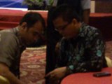Tak berapa lama kemudian Denny Indrayana kembali ke panggung dan mengatakan kepada para pegawai bahwa dirinya baru saja menerima pesan singkat dari Presiden.
