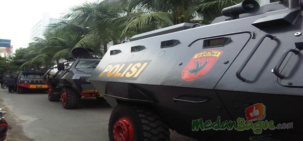 Meski Pihak PN Medan tak meminta pengawalan ketat namun pihak Kepolisian mendatangkan tim gegana di sekitar PN Medan. Jumat (3/5/2013) PN Medan menggelar sidang perdana dengan tersangka Rahudman Harahap. [Foto: Oryza Yati]