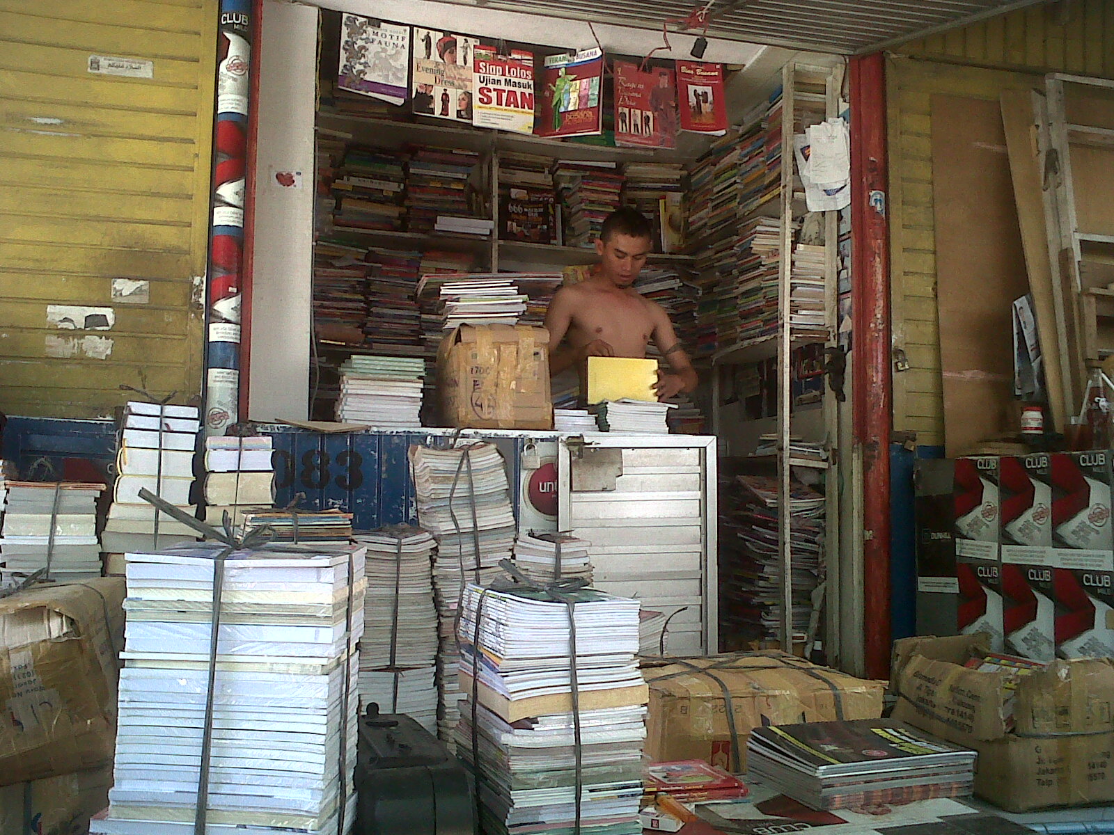 Sementara di lokasi kios pedagang lainnya, kesibukan menyusun buku untuk juga terlihat. Ada juga diantara mereka sedang istirahat, ada pula yang memanfaatkan waktu untuk bersiap-siap pindah.