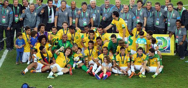 Tuan rumah Brasil akhirnya menambah jumlah gelar juara dalam ajang Piala Konfederasi setelah mengalahkan Spanyol 3-0 di final, Senin (1/7/2013). Turnamen yang digelar sebagai persiapan Piala Dunia ini akhirnya resmi ditutup dengan partai puncak Brasil versus Spanyol. Sementara itu, Italia Berhasil meraih juara ketiga setelah mengalahkan Uruguay di hari yang sama. [Foto: Istimewa]
