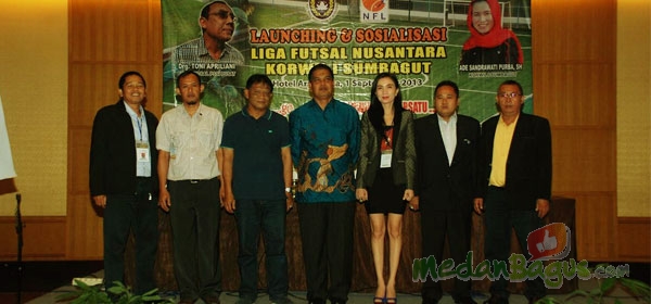 Pengurus Badan Futsal nasional (BFN), Koordinator Wilayah (Korwil I) Sumatera Utara berfoto bersama usai sosialisasi turnamen Liga Futsal Nusantara (LFN) 2013, Minggu (1/9/2013) di Hotel Aryadutha Medan.[Foto: Oryza Yati]