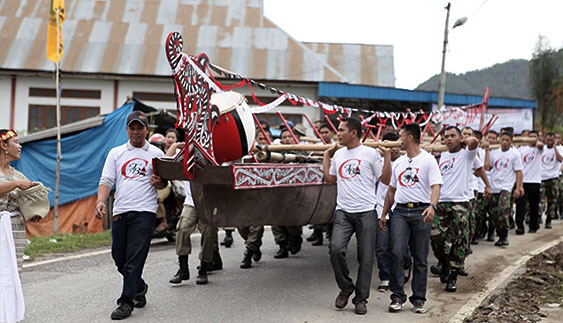 MBC. Kementerian Pariwisata dan Ekonomi Kreatif bersama Pemerintah Provinsi Sumatera Utara, Pemerintah Kabupaten Samosir dan Toba Samosir serta 9 pemerintah kabupaten/kota menggelar upacara tradisi Mangebang Solu Bolon.