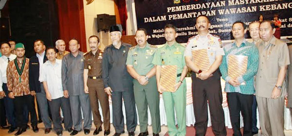 Ketua KPU Sumut, Mulia Banurea bersama Kapolda Sumut, Irjen Pol Syarief Gunawan, Gubernur Sumatera Utara, Gatot Pujo Nugroho, Pangdam I/BB, Mayjend TNI Istu Hari, beserta sejumlah tokoh agama dan tokoh pemuda mendeklarasikan Pemilu Damai 2014 di Sumatera Utara. Seluruh elemen masyarakat ini sepakat untuk terlibat dalam mensukseskan Pemilu 2014 dan menjaga kondusifitas pada tahun politik tersebut.[Foto : Istimewa]