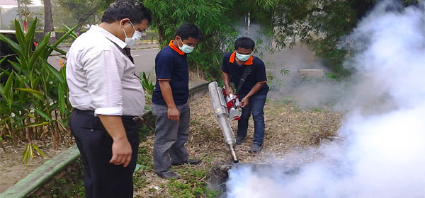 Dr Tuahman F Purba bersama timnya melakukan upaya pemberantasan sarang nyamuk dengan cara fogging atau pengasapan sarang nyamuk di sepanjang Jalan Agus Salim dan kawasan sekitarnya, Sabtu (8/3/2014). Selain dilokasi ini, Caleg DPRD Sumatera Utara dari Partai Nasdem ini juga melakukan fogging disejumlah pemukiman warga di Kota Medan. Fogging ini menjadi salah satu upaya Dr Tuahman untuk membantu masyarakat untuk terhindar dari penyakit Demam Berdarah Dengue (DBD) yang disebabkan oleh nyamuk Aedes Aegypti. Selain Fogging, kebersihan lingkungan dipastikan juga membantu masyarakat terhindar dari penyakit DBD.[Foto : Robedo Gusti]