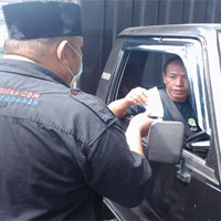 Setiap lamu merah menyala, Dicky dan sejumlah anggota tim relawanya langsung turun ke badan jalan untuk pembagian masker yang lebih diutamakan bagi pengendara sepeda motor yang melintas dikawasan tersebut.