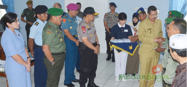 Wagub Sumut Tengku Erry Nuradi didampingi Ketua Yayasan Budha Tzu Chi Indonesia menyerahkan santunan kepada perwakilan 122 ahli waris korban Hercules C-130 di aula Lanud Soewondo Medan, Selasa (14/7/2015).[Foto: Istimewa]