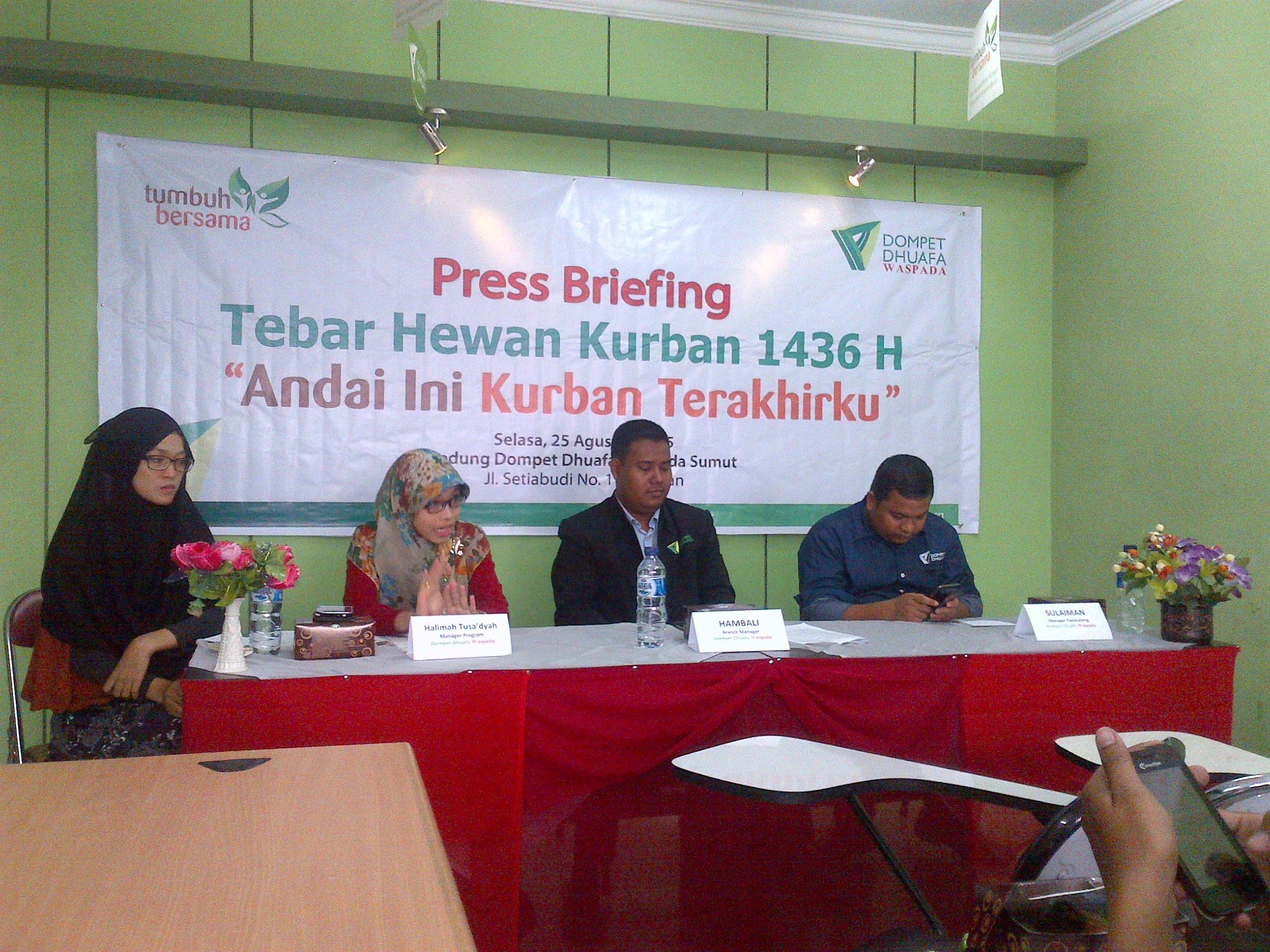 "Tahun ini Dompet Duafa mengusung tema "Andai Ini Kurban Terakhirku". Hingga kini ada 21 Desa dan 7 Kecamatan 9 desa di Kabupaten Karo, 3 Desa di Kabupaten Deliserdang, 8 desa di Kabupetan Langkat dan 1 desa di Aceh," kata Manager Fundraising Dompet Duafa Waspada, Sulaiman didampingi Branch Manager Hambali dan Manager Program Tusa' diyah di Kantor Dompet Duafa, Jalan Setia Budi, Selasa (25/8).