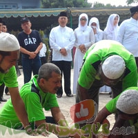 Eldin tiba di tempat penyembelihan hewan kurban di Halaman Masjid Amaliyah, Komplek Citra Wisata didampingi istrinya, Rita Maharani, anak tertuanya T Edriansyah Rendi SH, dan dua putrinya, Via Karina Nabila serta, Rania Kamila.