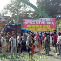 "Kalau pedagang pasar sutomo masih beroperasi sampai kapanpun barang (dagangan) kami tidak akan laku," teriak Upit (40) salah seorang pedagang.