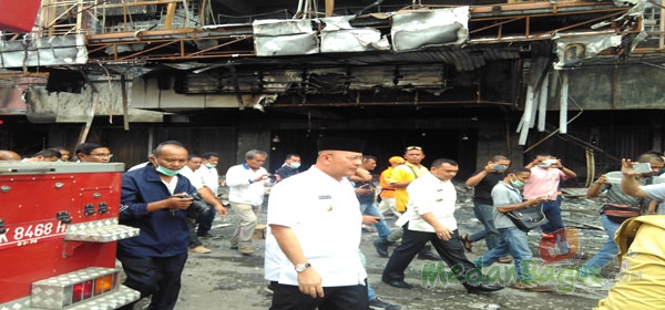 KOMENTAR Walikota Medan, Dzulmi Eldin mendatangi Pasar Aksara dan Ramayana pasca terjadinya kebakaran, Rabu (13/7) sore. Kedatangan Eldin bertujuan untuk memantau langsung kondisi bangunan tersebut. [Foto: Fajar Siddik]