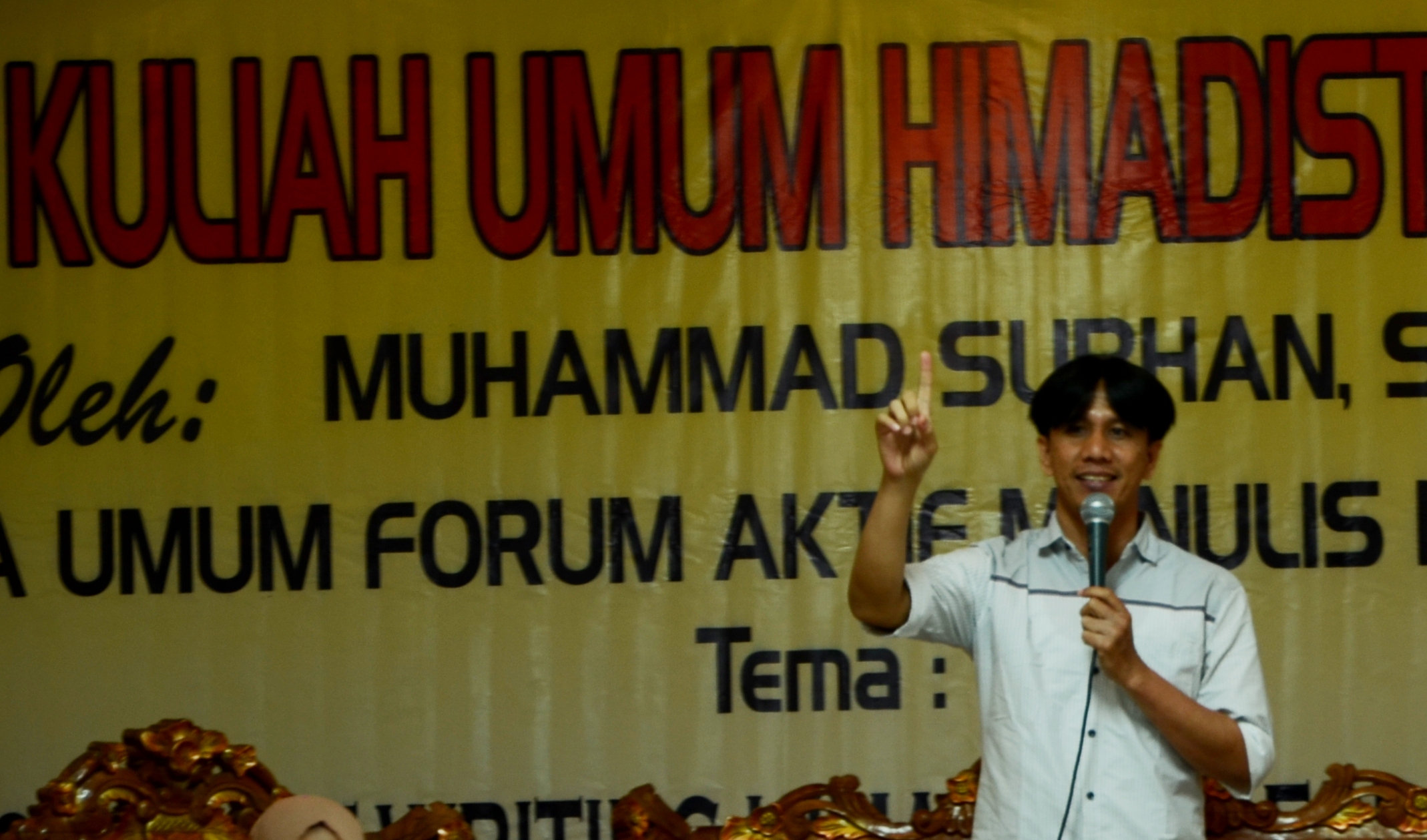 Ketua Jurusan Ilmu Administrasi Negara Universitas Teuku Umar, Alimas Jonsa, M.Si., menyampaikan terima kasih kepada Forum Aktif Menulis (FAM) Indonesia yang telah berbagi motivasi kepada mahasiswa UTU untuk membangun budaya literasi, khususnya tulis menulis di lingkungan kampus UTU.