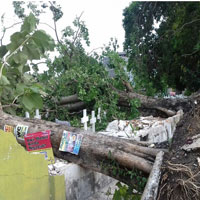 Dinas Pertamanan sendiri sejak pagi tadi langsung turun ke lokasi untuk memotong pohon yang juga merusak sejumlah nisan makam.