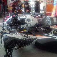 Usai merusaki komputer, pelaku menuju sejumlah sepeda motor yang dipajang di showroom, kemudian menendang kendaraan itu hingga roboh ke lantai. Tidak sampai disitu saja, lanjut Abi, dengan suara yang keras pelaku juga menginjak-injak bodi sepeda motor yang sudah roboh tersebut.